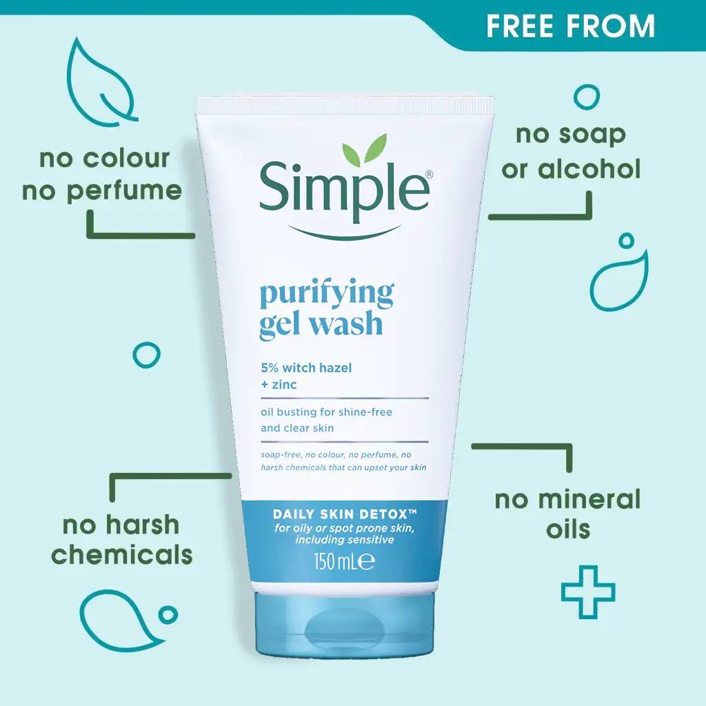 ژل شستشوی پوست چرب Purifying سیمپل یک محصول مراقبت از پوست انگلستانی است که منافذ مسدود شده پوست را پاکسازی مرده و استفاده روزانه از ان باعث سم زدایی پوست میشود. استفاده مستمر از این محصول باعث رفع لک های صورت میشود.